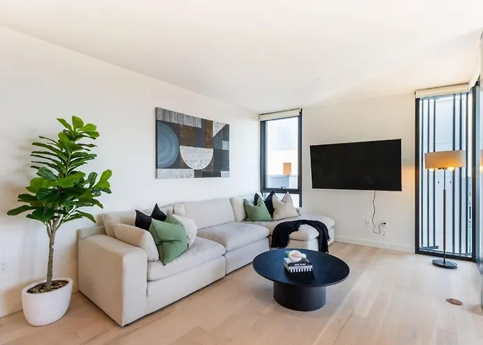 Nur 5 Minuten zu Fuß von das Santa Monica Civic Auditorium entfernt gelegen, lockt das 130 m² große Apartment The Pearl Coast - Rooftop Pool, Gym Luxurious 2Br Santa Monica Los Angeles mit einer Sauna. Der Virginia Avenue Park liegt in ca. 2 km Entfernung, während der Flughafen Los Angeles International in 17 Minuten mit dem Auto zu erreichen ist.